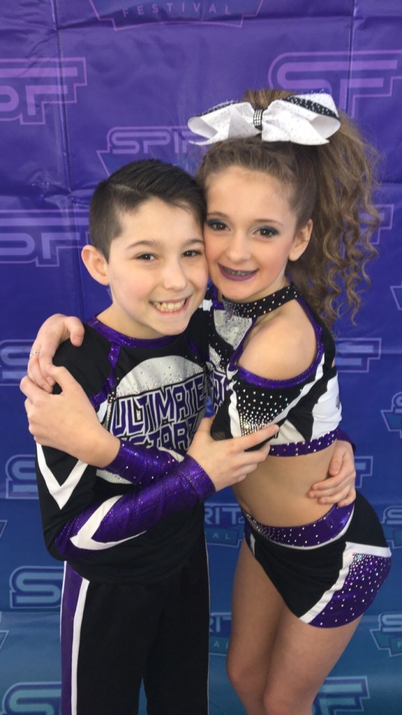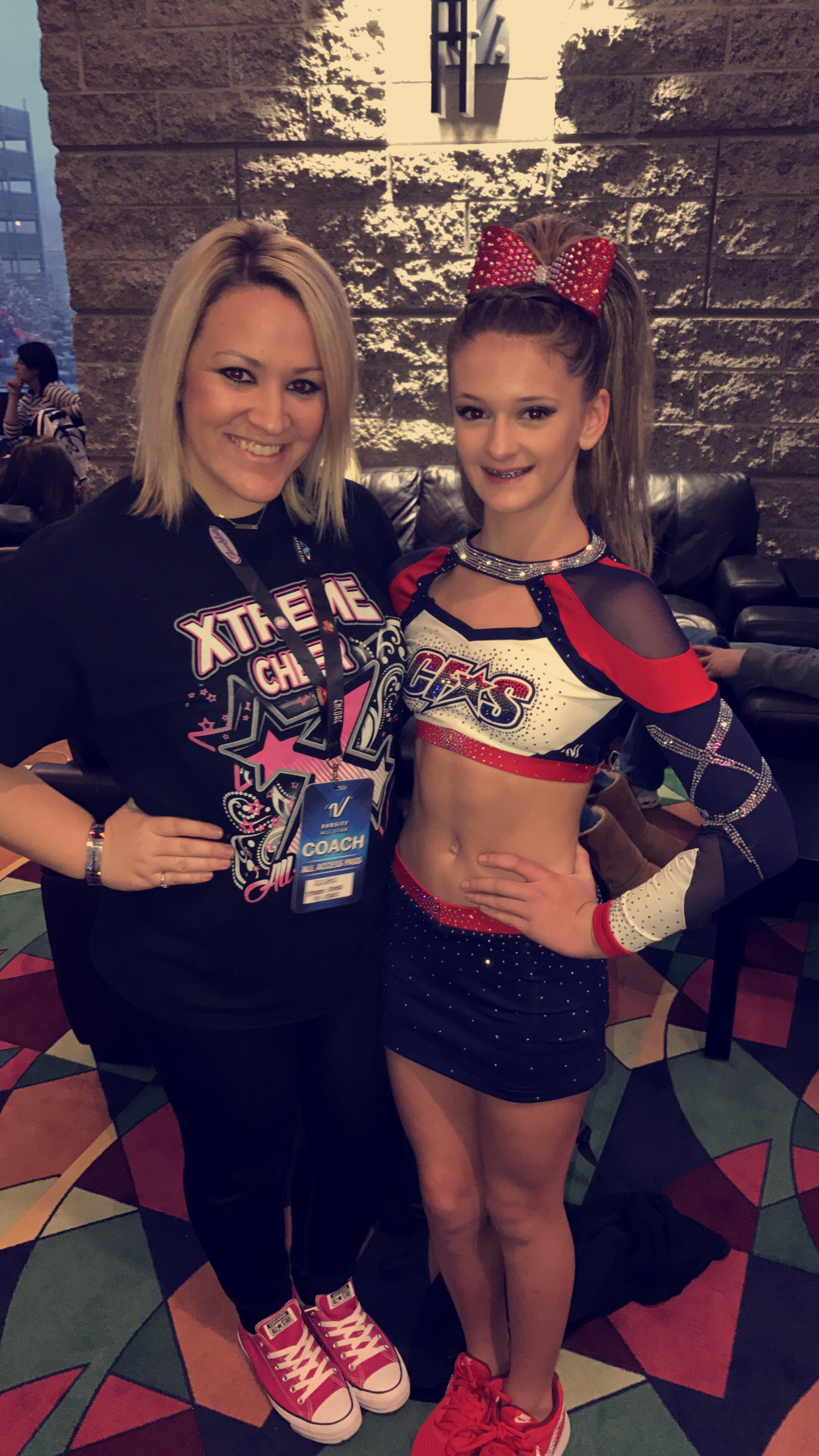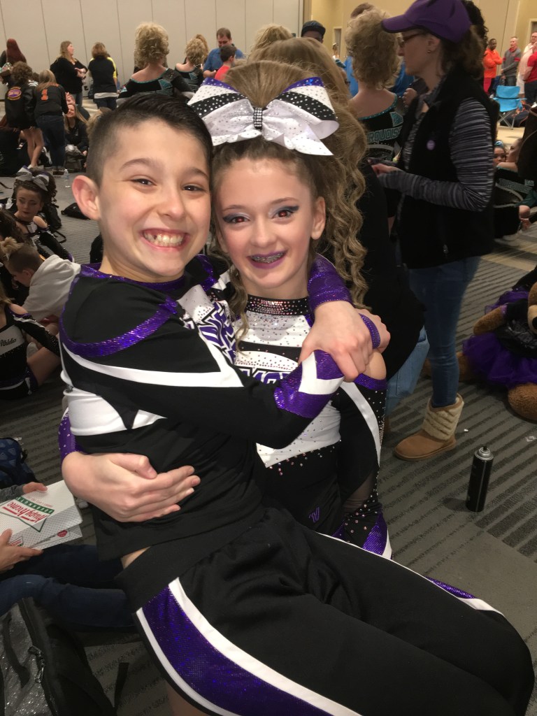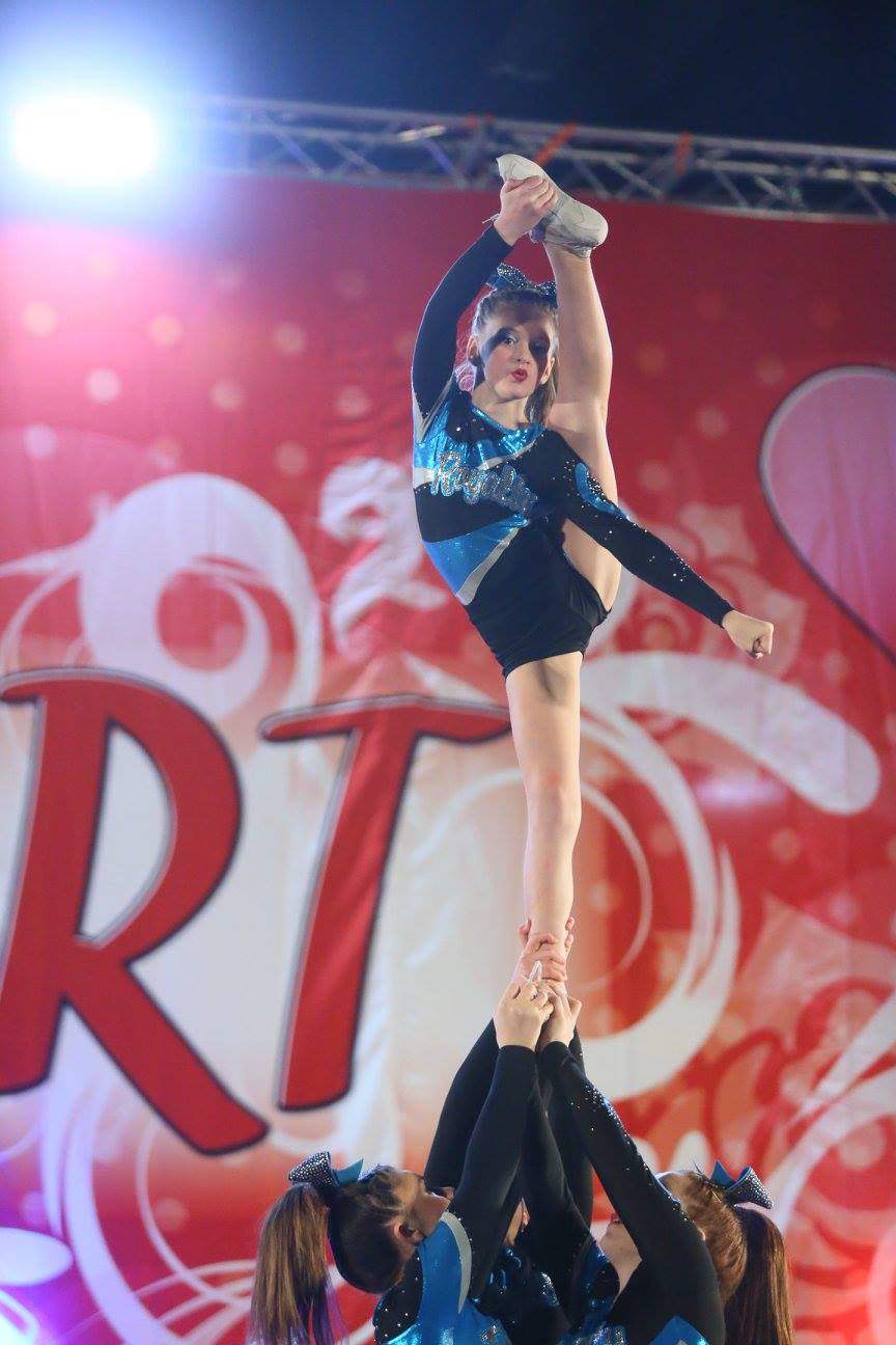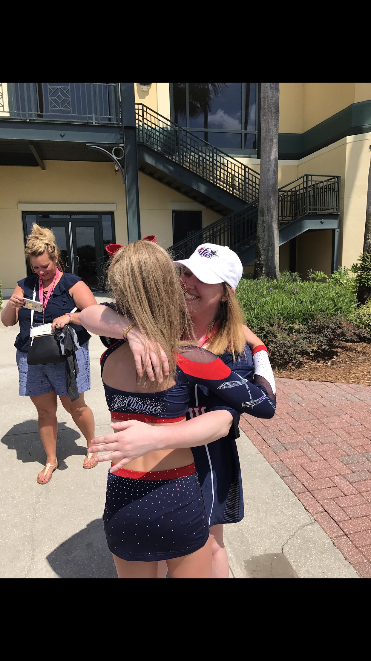 I met my best friend, who is more like my sister, the very first practice of my second season. Maddie is the reason I love cheer! She is still my biggest fan to this day. She has believed in me and has supported me through all of the “hops”! My first two years when I started all-star cheer, I was part of a brand new program. We weren’t very good, to be blunt we we barely ever won, but I loved my team and gym anyway. I never cared about winning or losing at that age; I just loved taking the mat at competition and getting that adrenaline rush that goes through your body when your team is called and you start waving to the crowd. At seven and eight years old, I never realized how competitive the sport actually was. I would look at other teams and not be intimidated at all in warm ups. I just loved taking the mat with my team. The older kids on my team, well, they got it, and compared themselves to other teams and were intimated in warm ups. They were competitive, and they wanted to win. They would be upset after every competition when we lost. I would overhear them say “I’m leaving and going to another gym next year.” That was never me. I never based my decision to leave a program on whether we were winning or losing. That decision was always based on whether I was growing in the sport or not.