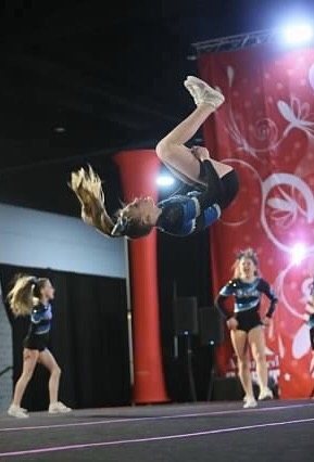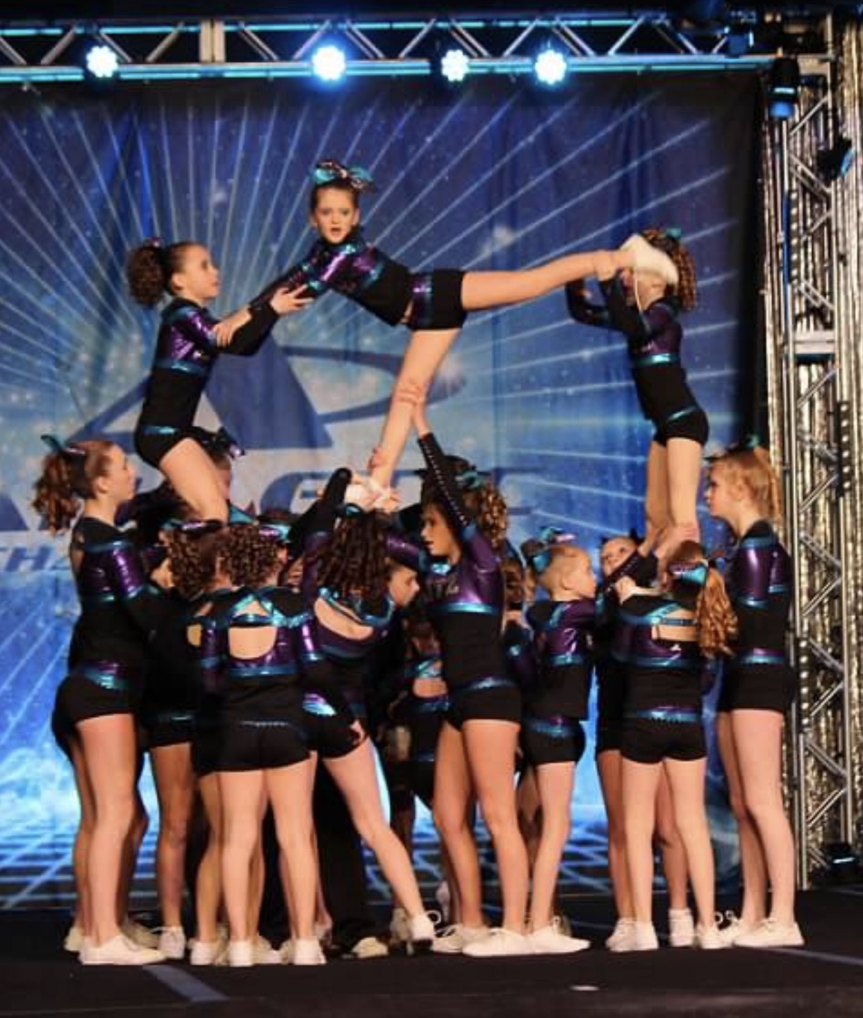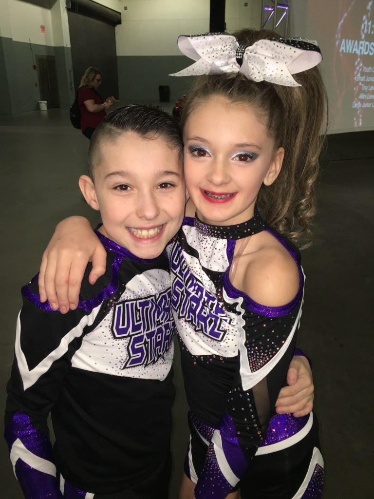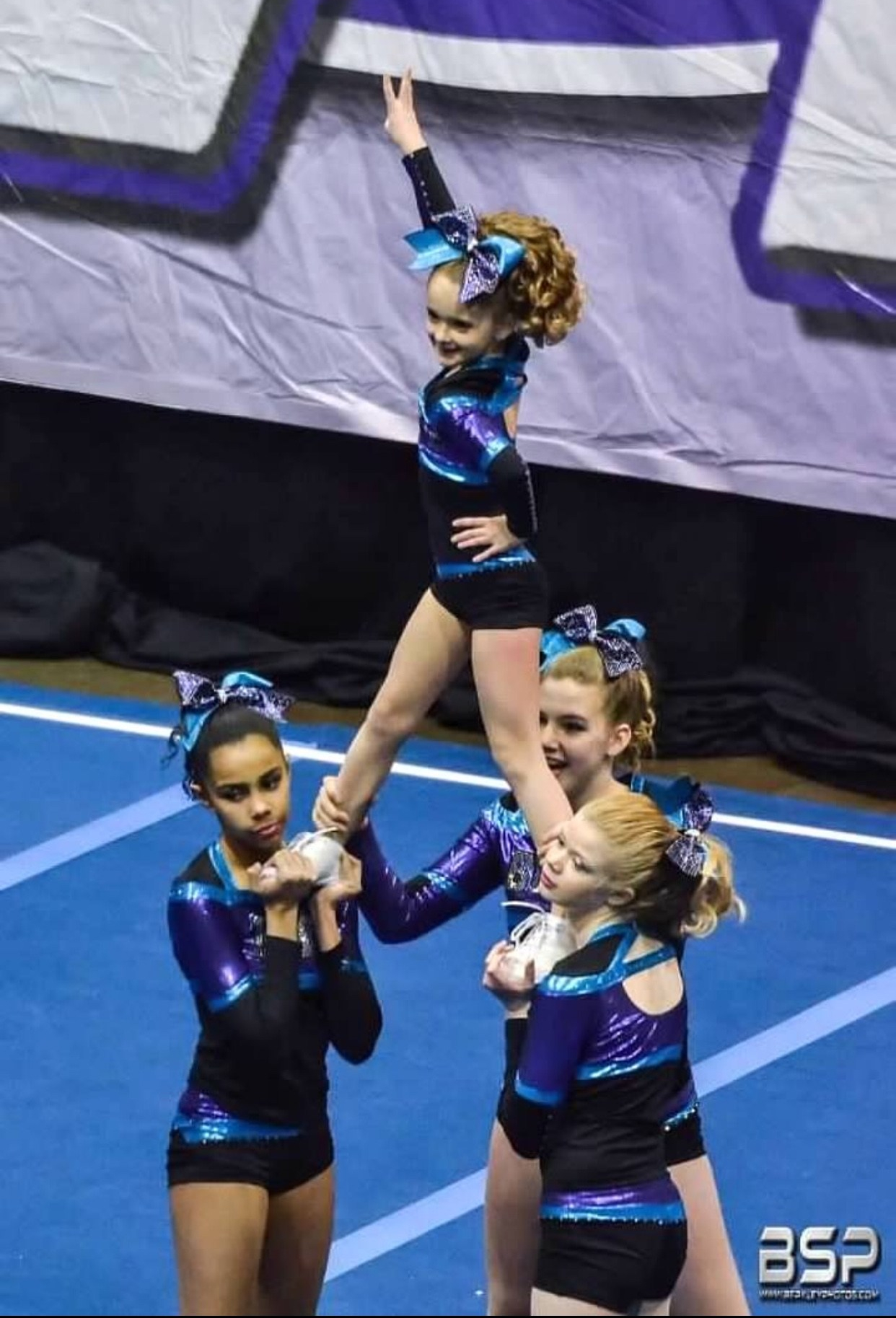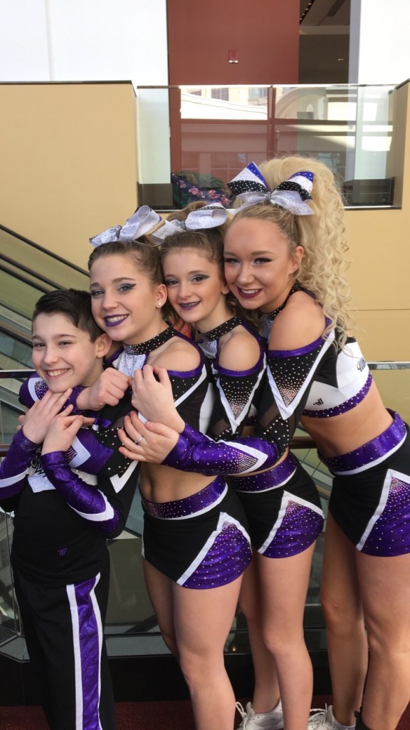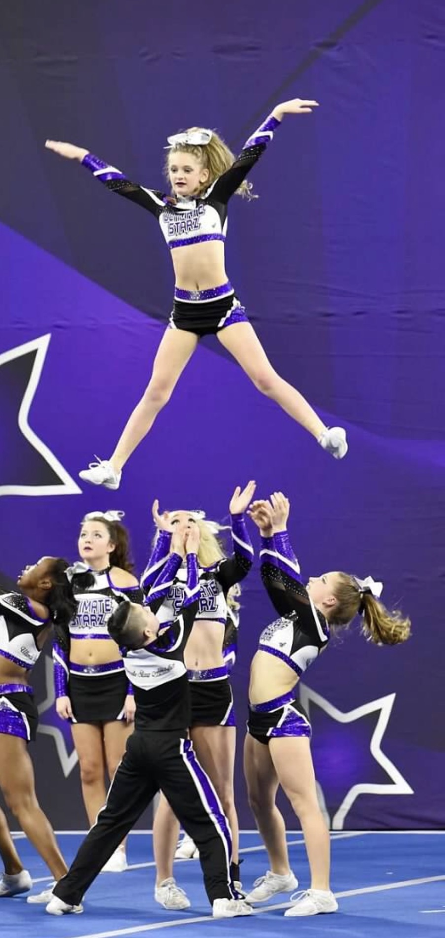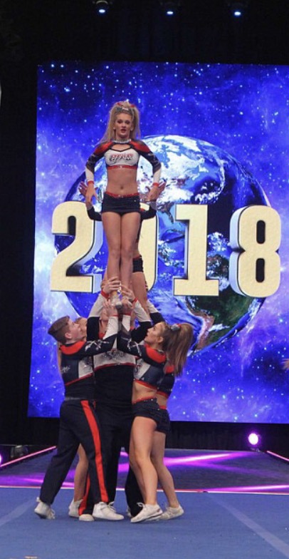 You never know why things happen, but I’ve been told over and over my entire life that they happen for a reason; so after crying myself to sleep that night, heartbroken that parents were talking so badly about me, I woke up, competed, and knew that I had to move on and chase my dream. I made the final decision to leave my parents’ gym and go after a level 5 team. When I look back I had never been so scared to ask them. I knew it was going to break their hearts watching me cheer for someone else, but I was shocked when the answer was, “we will always support you.” Everything happening for a reason became crystal clear when I met one of my best friends the very second I walked into my first level five try out. He was the reason; if I had never left my gym, I would’ve never met Peyton Keenen, PK, also known in my contacts as my Mike (we love Stranger Things). We clicked; his tumbling was amazing, and it definitely pushed me to work harder on my tumbling. He was my base that season for my first level five team (R5), along with my friend Chloe and my “mom” back spot Steph, who was the mom to our young group and kept us all in line. We had a fun season, especially my carpool (miss you and love you carpool Starz) My stunt group was the only stunt group on the team to hit at every competition that entire season, which was my goal from day one when I was told I would never fly level five. I was so proud of myself and my group because I wanted nothing more than to be able to say I did it. I did what they said couldn’t be done.
