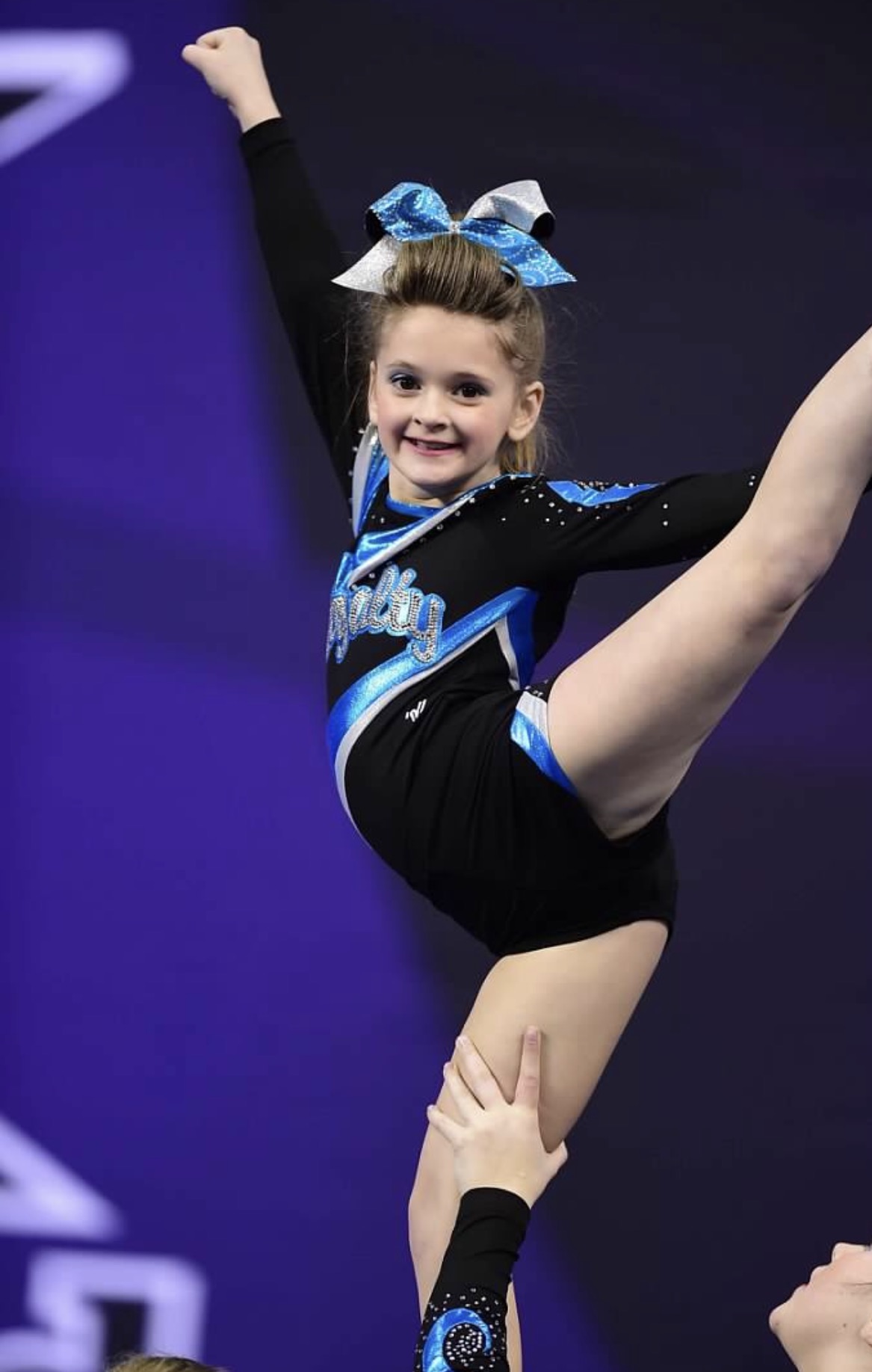 At the end of my second season, my coaches from my gym asked my mom and dad to open their own cheerleading gym, saying they would come coach for them. That was my first “hop.” I think it shocked everyone, especially me. I was going to have my own gym. They opened Royalty Athletics. The name came from it being a dream come true and a happily ever after, but it wasn’t a fairytale for me because my years at Royalty were short. I competed for my parents’ gym for only two seasons, and guess what? We won! We won a lot, and at the end of their second season, I asked if I could go to another gym. It had nothing to do with winning or losing; we were winning all the time. One of my teams went undefeated the whole season: much love to my Majesty girls and coach Jackie, and the J3 Jewels and coach Tanisha will forever be in my heart. I wasn’t leaving because we were winning or losing. I was gaining new skills and new passes, and my parents’ gym didn’t have a level 5 team for me. I asked that year if I could go to try out at another gym about 45 minutes away. My parents still had their gym, and I only asked to leave to be on a level 5 team. I “hopped” from my own parents’ gym. I was only 10 years old, but I knew what I wanted, and that was to be on a level 5 team. That was one of my hardest seasons emotionally. At my very last competition for Royalty that season, while we were traveling and staying at a hotel, I overheard a mom from the team talking about me while I was in the hallway walking by her room. I’ll never forget what she said: “She may be able to tumble level 5, but she will never fly on a level 5 team.” It broke my heart. However, I can’t thank her enough. She’s the reason for the second “hop;” it was the push I needed to have the courage to try level 5 and to be honest I wanted to prove her wrong. I specifically remember falling in love with Pinterest and creating a secret board called “prove her wrong,” and I would pin inspirational quotes that I would look at on my rides to and from practices. One of my favorites that I would read over and over was, “work hard in silence, let your success be your noise.” So I did.